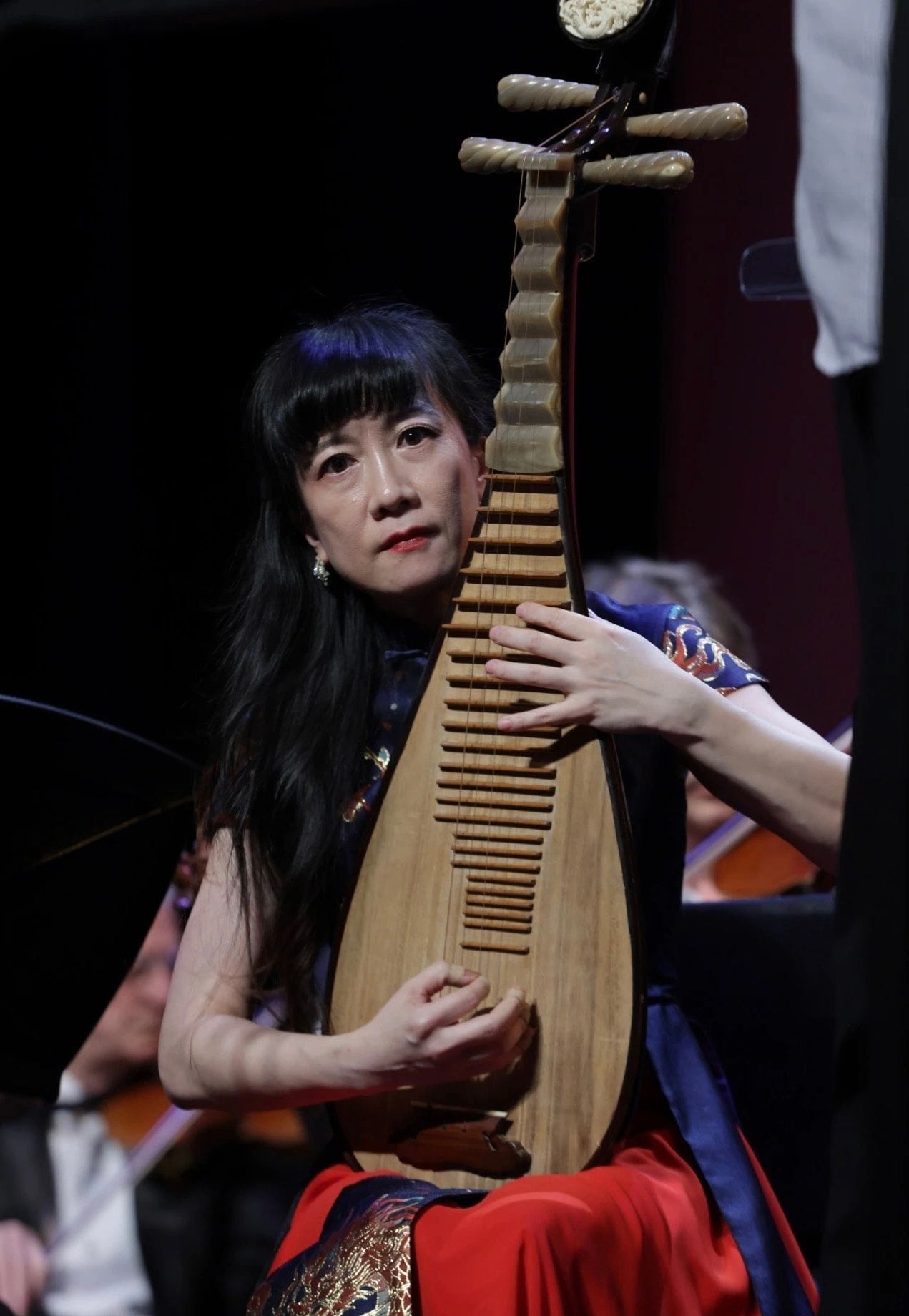 第三乐章《黄河之水天上来》:在琵琶演奏家Bella Huang弹奏的凄婉之音中,朗诵艺术家张瑞恒的激情朗诵将黄河的汹涌、壮烈、多变及民族向往表现得淋漓尽致,深深感染了观众。