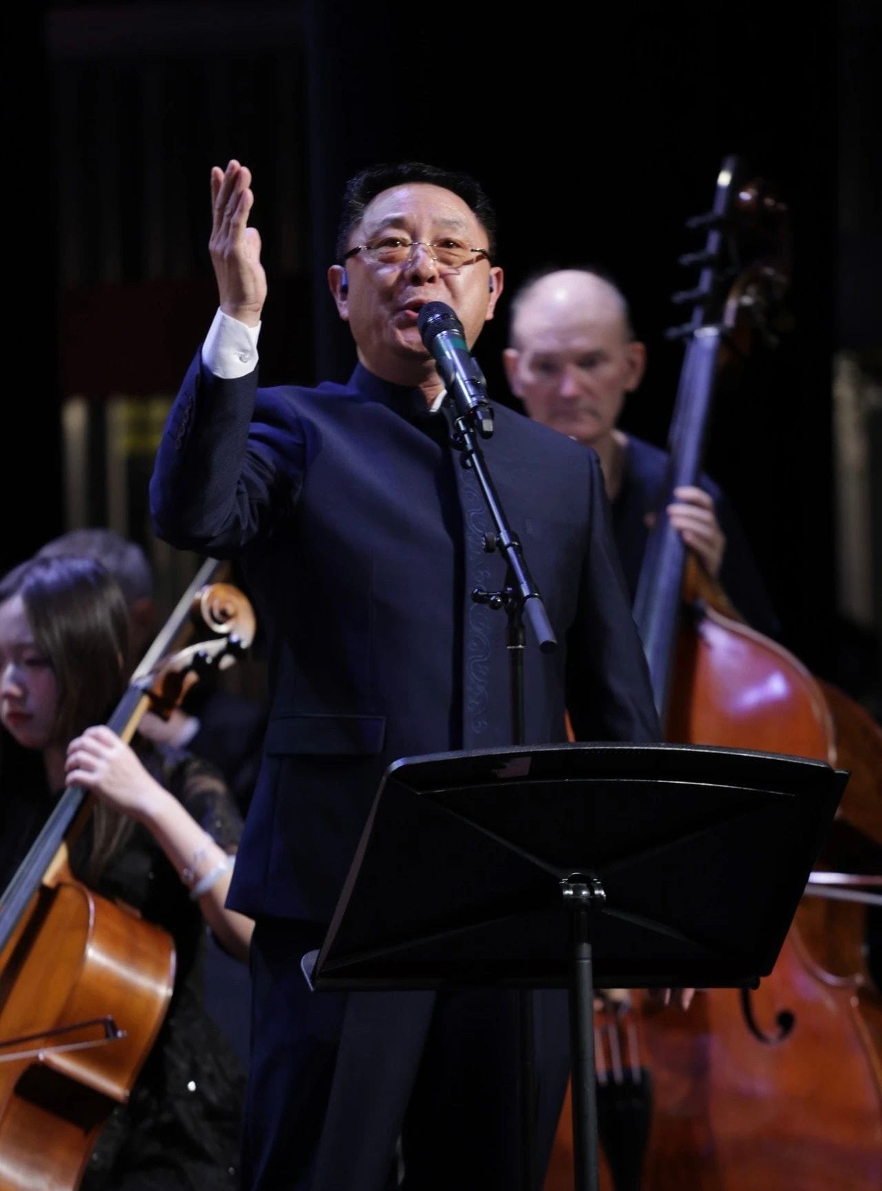 音乐会的最后,莅临嘉宾与合唱团在交响乐团的演奏中,共唱《保卫黄河》,引起亢奋的观众们融入齐唱。