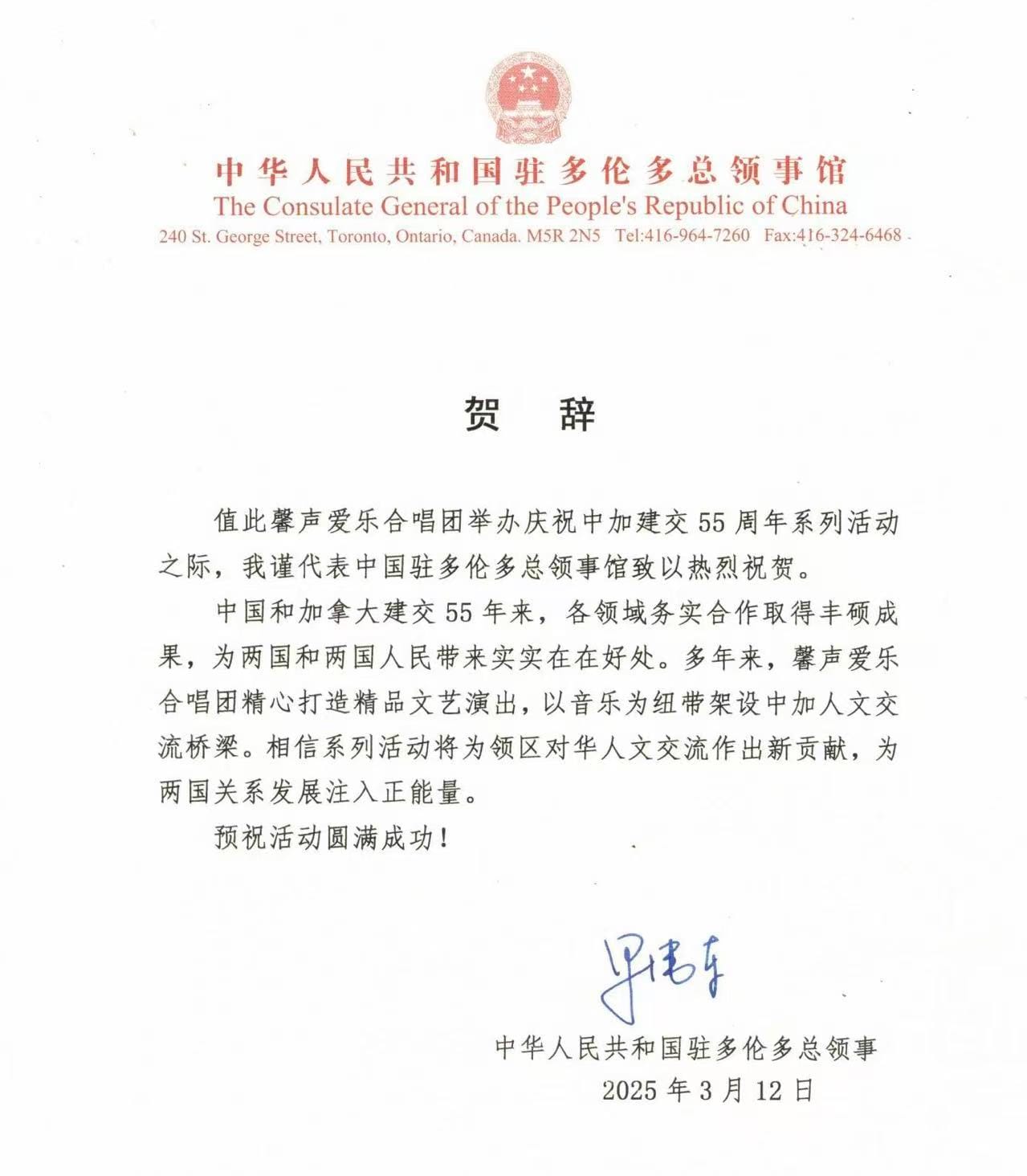 在中加建交55周年之际,馨声爱乐合唱团携手多伦多清华校友艺术团,隆重推出《庆邦交 · 铭历史 · 向未来》纪念音乐会。 这场音乐盛典不仅是系列活动的闭幕巨献,更是一场跨越时空、以音乐对话历史的精神之旅。